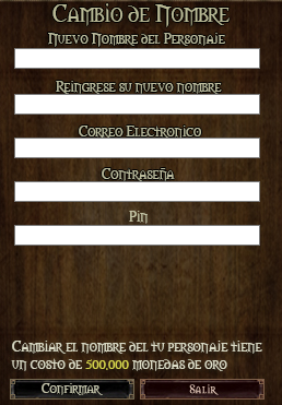 1) En el primer casillero pondremos el nuevo nick del personaje